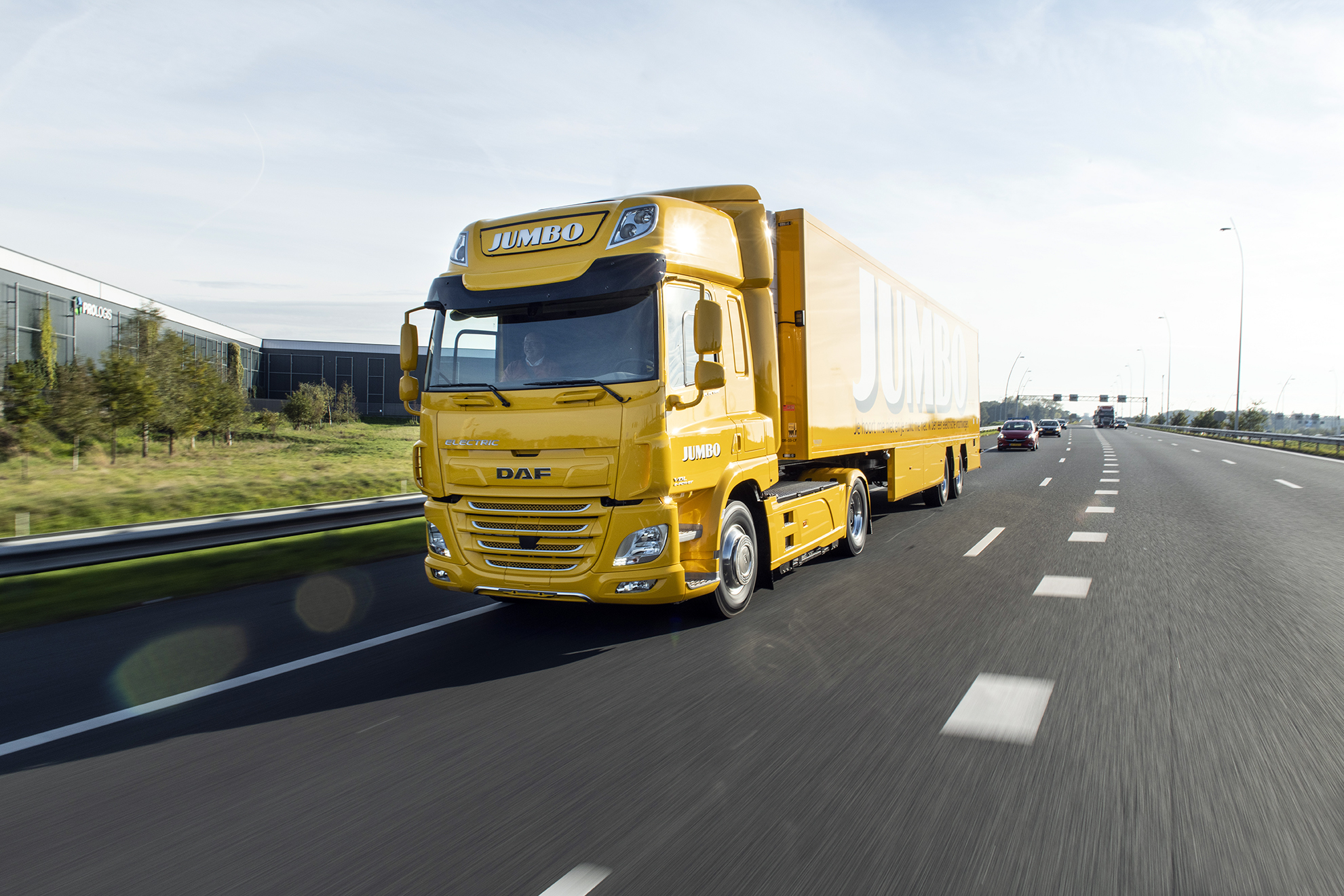 L’autonomia di circa 100 chilometri, rende questo veicolo adatto per il trasporto ad alto volume nella distribuzione urbana. La batteria è dotata di una funzione di ricarica rapida da 30 minuti mentre la ricarica completa richiede solo 90 minuti. Il DAF CF Electric è in grado di effettuare consegne in un raggio di circa 50 chilometri, con emissioni ambientali pari a zero e un inquinamento acustico minimo. Nel suo centro di distribuzione di Veghel la Jumbo ha installato una stazione per la ricarica del veicolo.