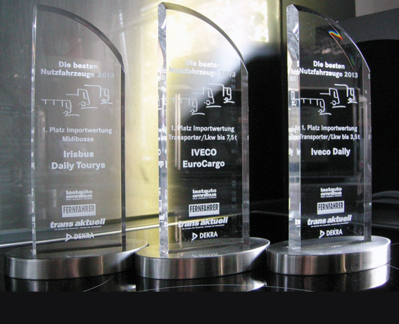 Iveco si è aggiudicata una lunga serie di premi assegnati da un gruppo editoriale tedesco specializzato in trasporto e logistica. Gli oltre 11 mila lettori contattati tramite un sondaggio hanno decretato il Daily Tourys “Best Imported Minibus”, il Daily “Best Imported Transporter” per il segmento fino a 3,5 ton e l’Eurocargo “Best Imported Truck” nel segmento fino a 7,5 ton.