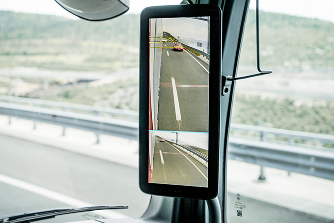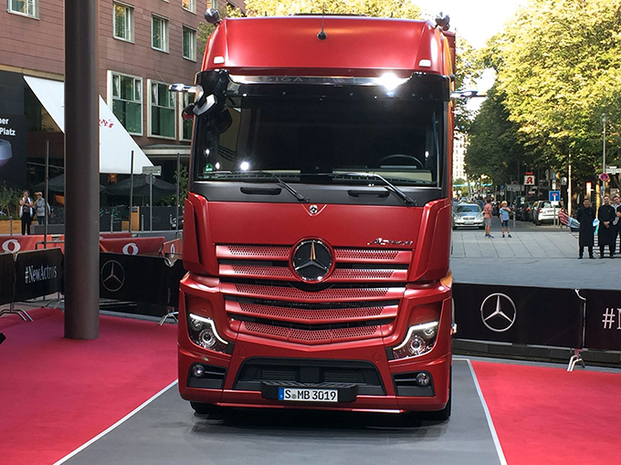 Tante le novità più o meno visibili, che passano comunque tutte attraverso nuove tecnologie. Partiamo dall’esterno: innanzitutto sono scomparsi gli specchi retrovisori, sostituiti da telecamere MirrorCam che mostrano su due display da 15 pollici posizionati sui montanti all’interno della cabina quanto inquadrano. C’è un vantaggio aerodinamico e uno di visione soprattutto di notte. Le telecamere infatti, ma anche i nuovi deflettori laterali consentono una migliore aerodinamica a beneficio di una riduzione del consumo di carburante che a Stoccarda hanno stimato arrivare fino al 3% in autostrada e al 5% nel traffico extraurbano. Un problema riguarda invece chi lavora in ADR: questo sistema non si stacca in pochi secondi non si può usare con merci pericolose.
