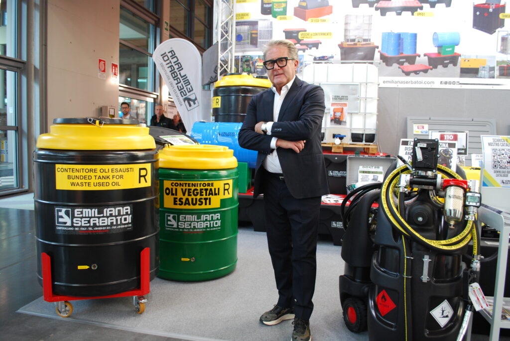 In fiera l’azienda modenese ha presentato le nuove vasche portafusti in polietilene da 120 a 1.100 litri, con piano di appoggio in grigliato removibile, e le vasche per la raccolta degli oli esausti da 300 a 500 litri.