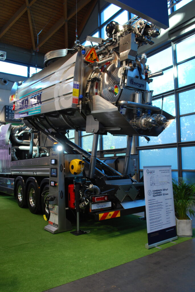 In fiera è stata presentata in anteprima italiana un’unità a 5 assi aspira-polveri Elegance 3.0 su Volvo per il mercato svizzero. «Ha una coppia di pompe particolari e può muoversi autonomamente», spiega Luca Moro. «È un prototipo già mostrato al Pollutec e ora pronto per i test in Italia».