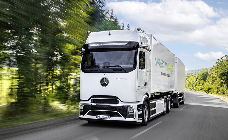 A dare man forte alla redditività ci sono tanti supporti. Essenziale il già ricordato nuovo assale elettrico a 800 volt con due motori elettrici e cambio a quattro velocità. I motori generano una potenza continua di 400 kW e una di picco di 600 kW. In più, rispetto alla guida, il conducente può scegliere tra cinque diversi livelli di recupero in frenata. Se lo si desidera, sul touchscreen del cockpit digitale è possibile attivare la modalità «guida con un solo pedale», ovvero la decelerazione mediante recupero dienergiacon minore utilizzo del freno meccanico.