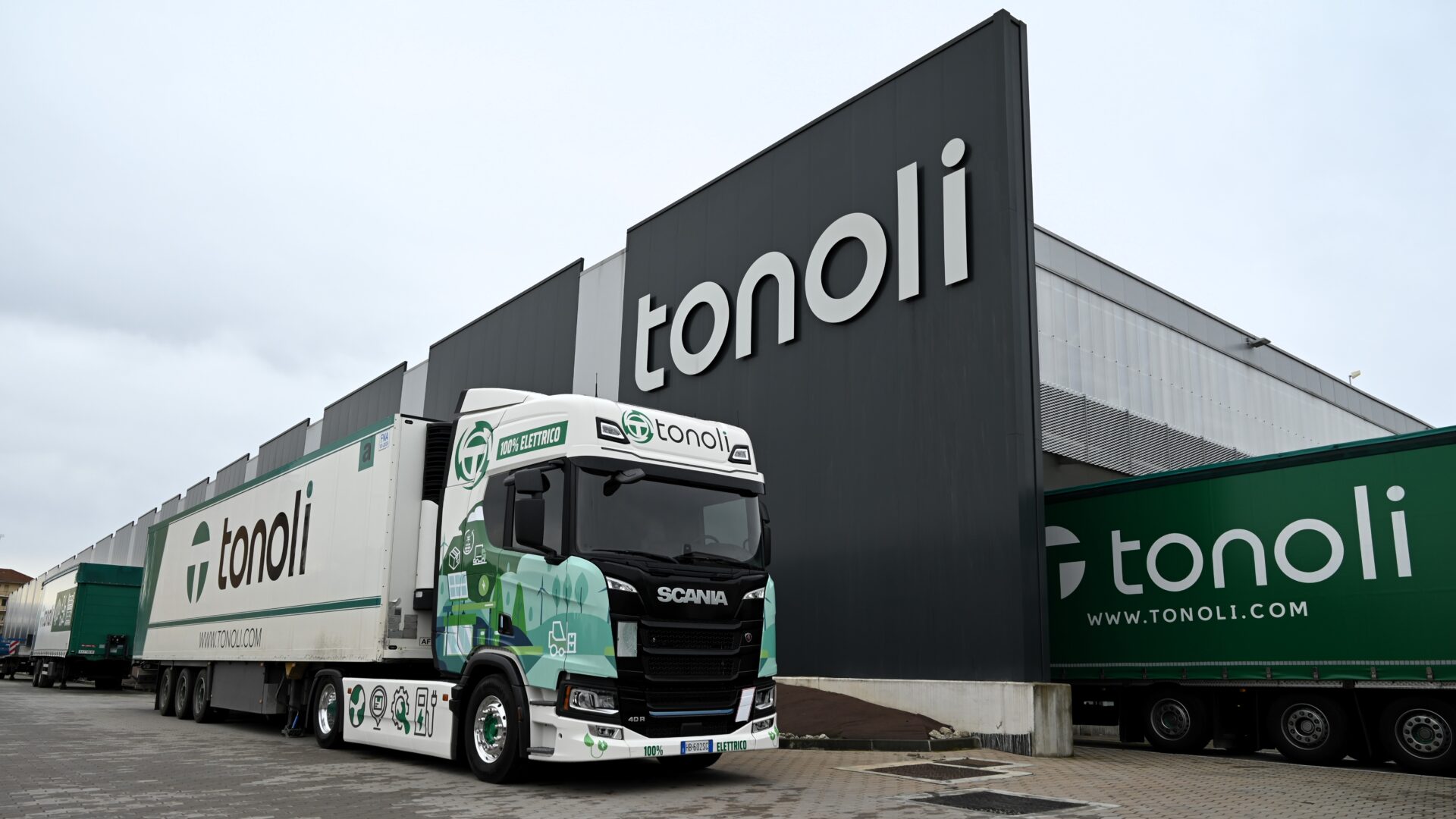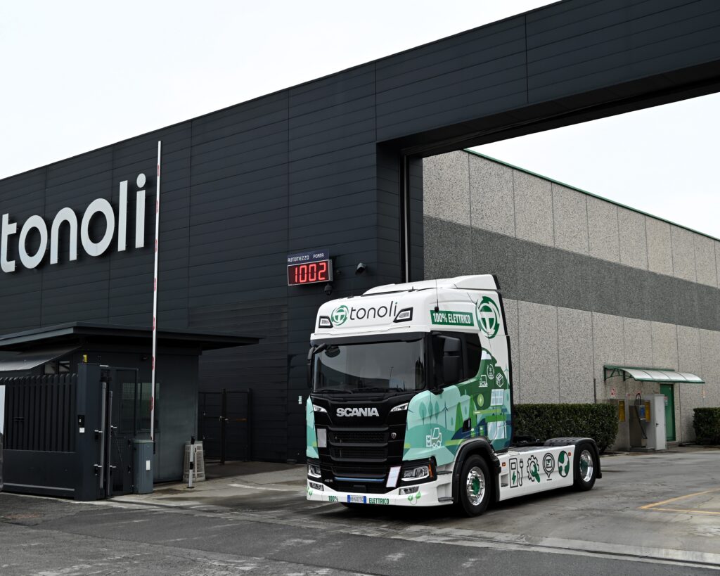 Tonoli Spedizioni e Logistica ha inserito in flotta il suo primo veicolo 100% elettrico, uno Scania 40 R destinato alle operazioni in provincia di Cuneo. Il veicolo è alimentato esclusivamente da energia proveniente da fonti rinnovabili prodotta dall’azienda stessa, che dispone di un’infrastruttura energetica basata su impianti fotovoltaici e sistemi di accumulo.