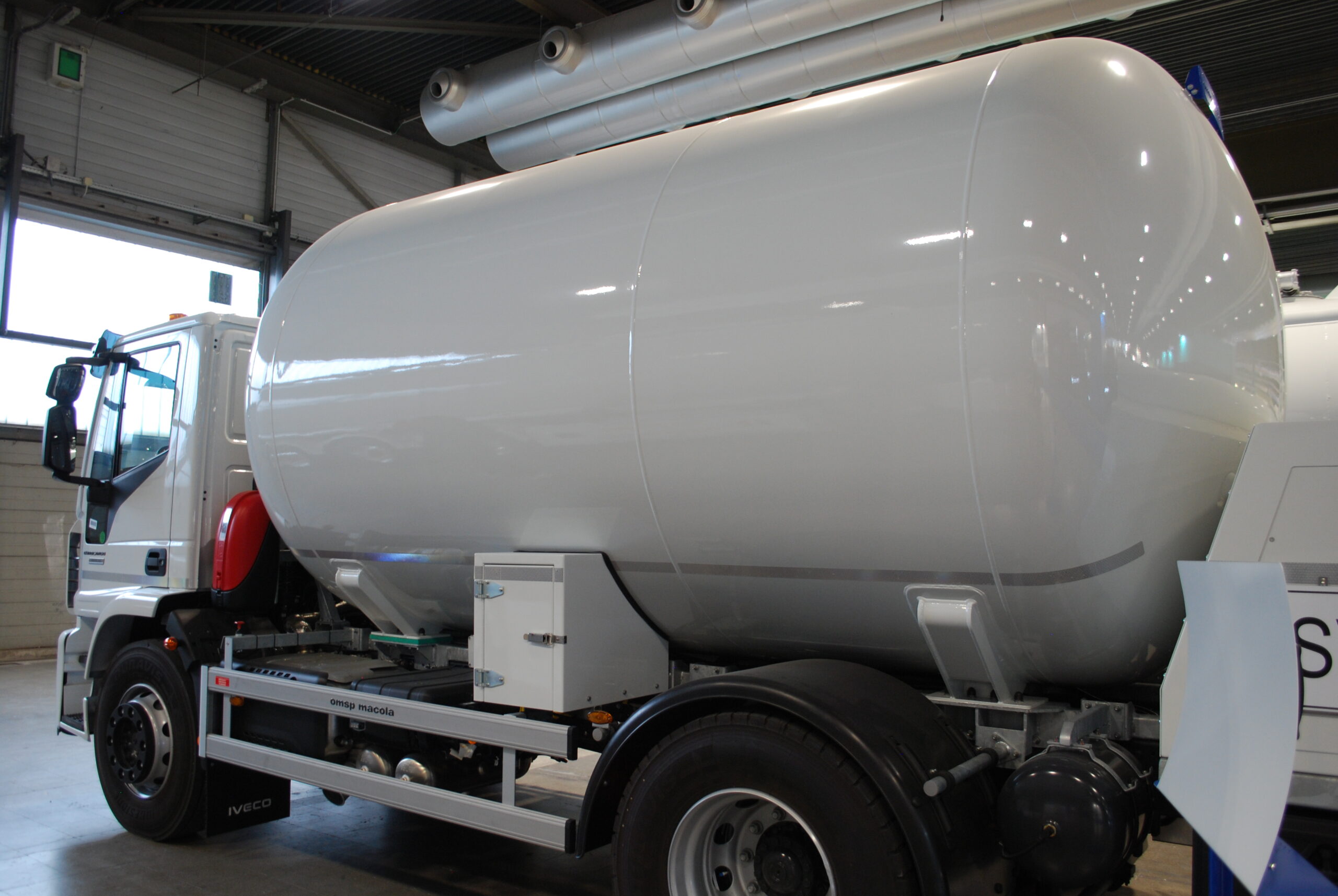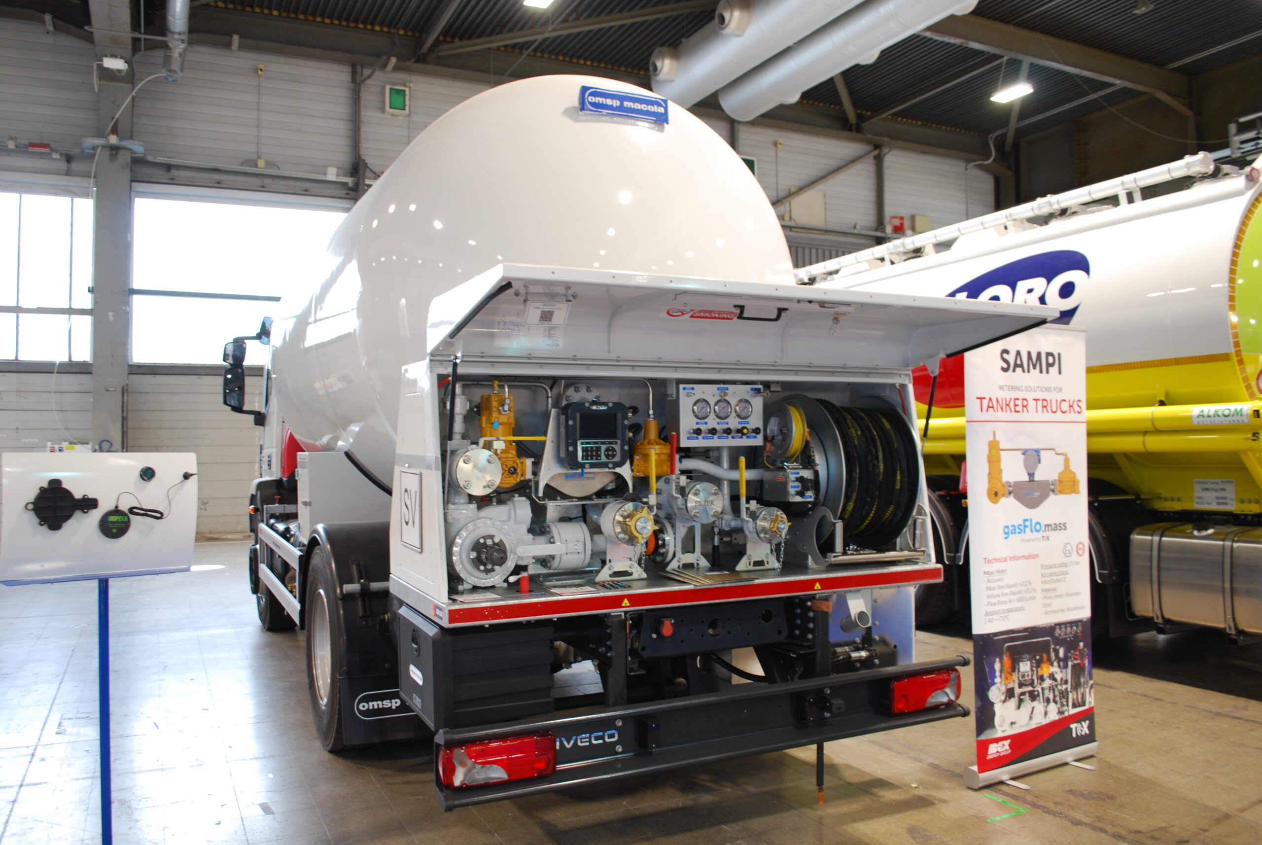 Fra i big presenti in fiera Omsp Macola con una cisterna per Gpl su motrice da 17.500 litri. Ha il cassone posteriore ridisegnato per contenere naspi, pompa e contatore. Tutti al coperto e protetti. Gianni Costantinis, responsabile vendite del Gruppo veneto, fa un primo punto sul mercato: