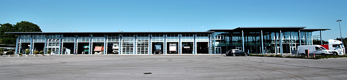 L’area su cui si sviluppa l’insediamento è di quasi 20 mila mq, dei quali 14.500 mq occupati dal piazzale, mentre la superficie coperta è di 3.140 mq suddivisi in officina 1.800 mq, magazzino ricambi 900 mq e 400 mq per uffici e showroom.