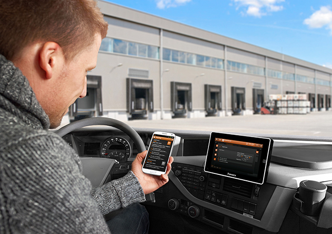 L’applicazione FMS può essere utilizzata sia su computer sia su dispositivi mobili; l’unità di bordo può essere installata in ogni autocarro e i dati vengono acquisiti in streaming al gestore della flotta per supportare le decisioni operative in tempo reale.