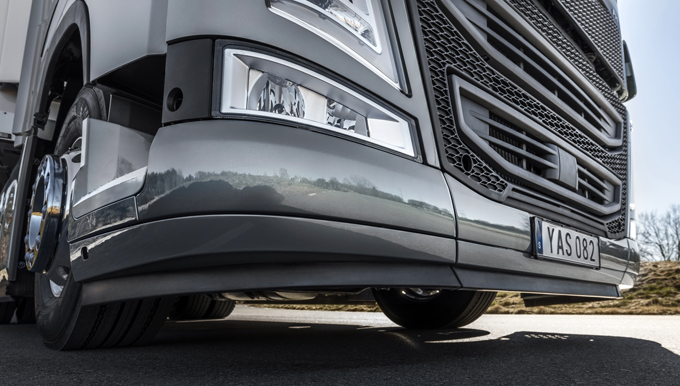 Altri fattori che influiscono sulla riduzione del consumo di carburante sono i miglioramenti apportati all’aerodinamica della cabina. Qui, per rendere più uniforme il flusso dell’aria, Volvo Trucks ha ottimizzato lo spoiler paraurti anteriore, i pannelli deflettori, i parafanghi, i paraspruzzi e i vani ruota. Dettagli che combinati assicurano notevoli benefici.