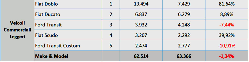CLASSIFICA DEI PRIMI CINQUE VEICOLI COMMERCIALI NOLEGGIATI