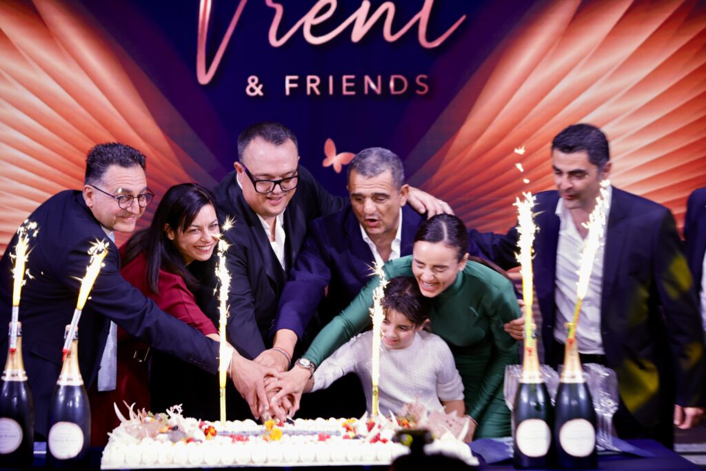 il taglio della torta per i 17 anni di Vrent, compleanno festeggiato tramite la kermesse «Vrent & Friends», tradizionale appuntamento che il gruppo dà ogni anno nel corso di Ecomondo ai suoi partner, collaboratori e amici