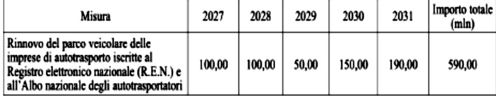 La novità più rilevante è il carattere strutturale della misura. I fondi, infatti, sono già programmati per ciascun anno dal 2027 al 2031, creando così una continuità che manca da tempo negli incentivi destinati al settore. Questo permetterà alle aziende di pianificare gli investimenti con maggiore certezza, favorendo il graduale rinnovo di un parco veicolare oggi mediamente troppo anziano. Questo in particolare è il calendario degli stanziamenti: