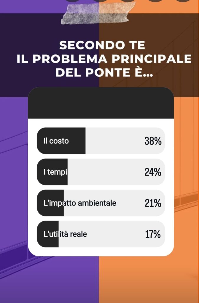 Insomma, un destino tormentato per un progetto che ha cominciato ad affascinare gli italiani da molto tempo, con le prime stesure subito dopo l’Unità d’Italia. Ma qual è oggi il maggiore ostacolo alla realizzazione? Lo abbiamo chiesto in rete: il 38% ha indicato il costo alla base delle difficoltà, subito dopo con il 24% delle preferenze arrivano i tempi (troppo lunghi), il 21% ha risposto che la frenata è dovuta a questioni ambientali e solo il 17% ritiene che non venga realizzato perché privo di utilità reale.