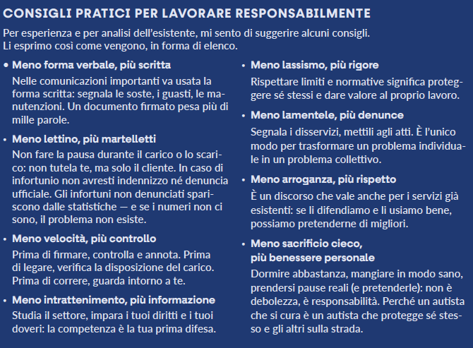 Perché non basta nominarlo: va stimolato e gestito. E qualcuno dovrà pure farlo. E chi meglio di noi autisti, che siamo quelli pratici per antonomasia? Perfetto in teoria, ma nella pratica come si dovrebbe operare? Risposta: eliminando la cultura dell’alibi. L’«accettazione con riserva di controllo» di fatto è una scappatoia per attribuire ad altri una nostra responsabilità.