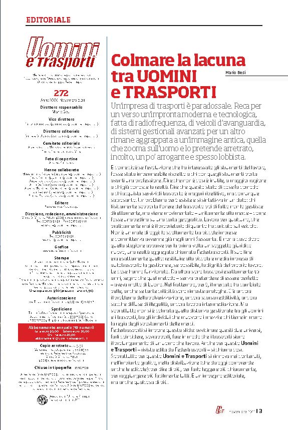 L’editoriale: colmare la lacuna tra UOMINI e TRASPORTI