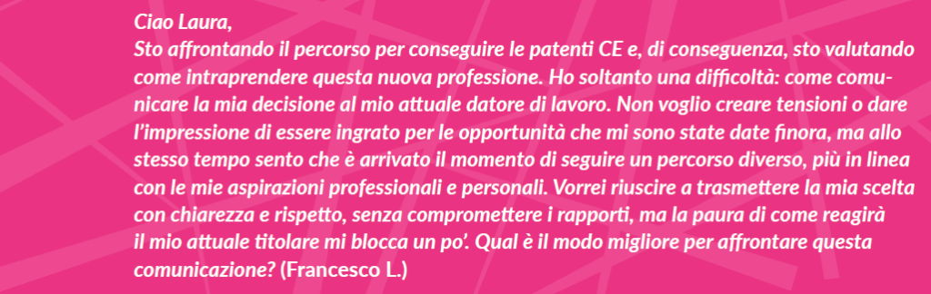 Eppure, se anche con i figli questo approccio risulta sbagliato, visto che il compito di un genitore è accompagnarli nella vita e non vincolarli alla propria, come potrebbe mai essere giusto applicarlo nel mondo del lavoro?